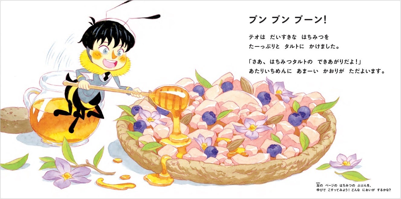 テオの集めた瓶の中のはちみつから、甘~い香りが!